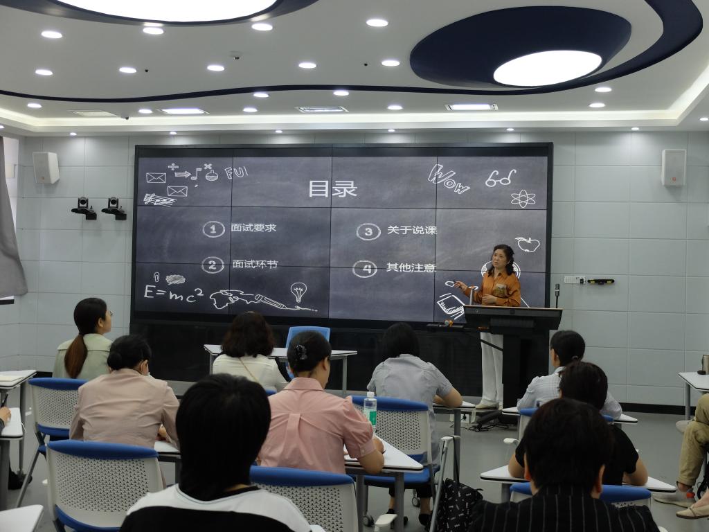 杜丽娟院长对教师职业价值与使命、教师职业能力素质与要素进行了深入讲授,同时对高校教师资格证面试的意义、特点、测评要素、内容、场景、面试流程、面试前的准备、如何回答规定问题、模拟上课、面试礼仪等方面进行了详细解读。在互动环节中,杜院长和老师们就试讲环节的相关问题进行了互动。培训会在融洽、轻松的氛围中圆满结束。