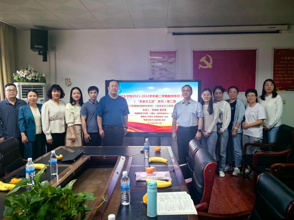 为进一步深入学习贯彻党的二十大精神及习近平总书记系列重要讲话精神,全面落实“立德树人”根本任务,提高yl23411永利官网教师育人的思想自觉和专业综合素质能力。党委教师工作部、yl23411永利官网(教师发展中心)联合物理与电子工程学院于5月14日(周二)下午在A09号楼四楼西会议室开展题为“高校工匠精神的培养与传承”“分形多孔介质理论及其应用”的双师双能型”教师队伍能力提升项目之“未来大工匠”系列活动,yl23411永利官网理、工学部近三年新入职教师代表及部分学生代表参加本次系列活动,本次活动由物理与电子工程学院刘俊峰、苗同军老师主讲。