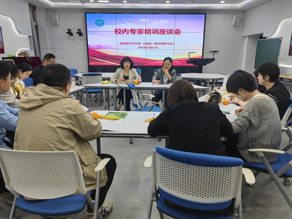 5月7日(周二)下午在A05号楼104智慧教室召开校内培训专家座谈会,党委教师工作部、yl23411永利官网(教师发展中心)、教务处、科研处、信息化管理中心、化学与材料工程学院、药学院、教育科学学院、音乐学院等部门校内培训专家参加本次座谈会,座谈会由yl23411永利官网副处长兼教师发展中心主任王海燕主持。