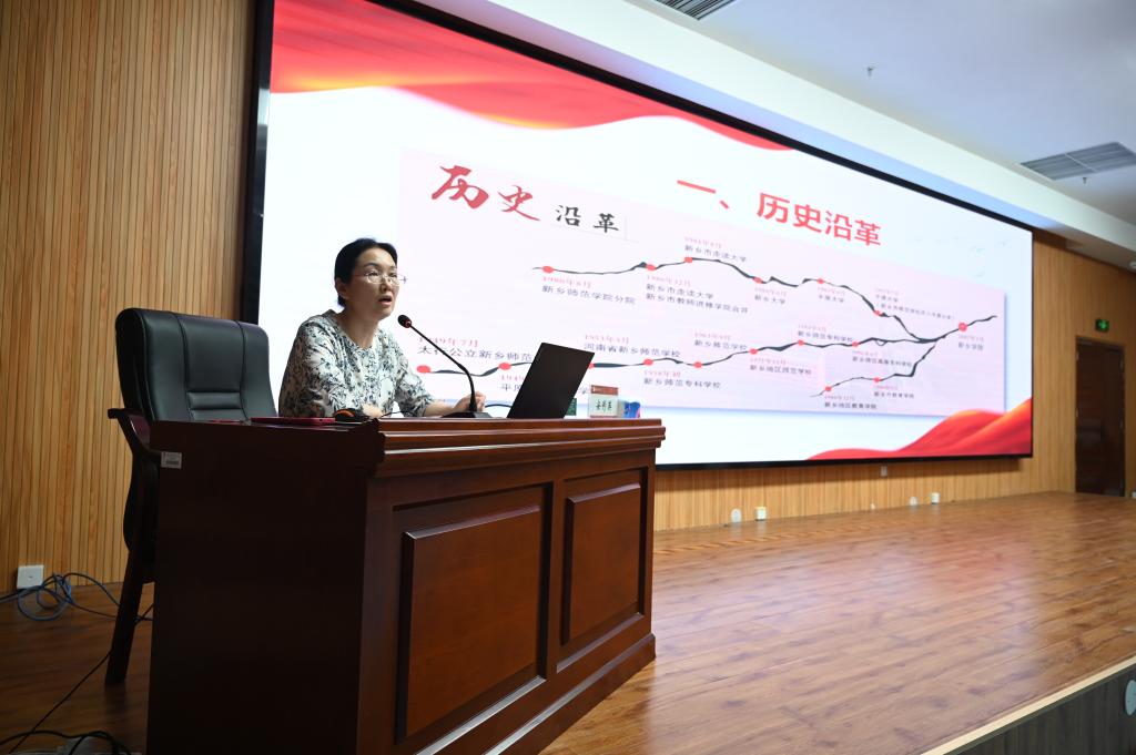 安彩英就学校历史沿革、学校概况、办学成就、学校文化等四个方面对yl23411永利官网的校史校情进行了讲述。她讲到,校史是一个学校历史沿革、发展轨迹的记录;校情是学校办学定位、办学成果的展现。学校史,就是要学习新院人不忘初心,牢记使命的历史;就是要学习新院人抢抓机遇,拼搏奉献的历史;就是要学习新院人凝心聚力,团结奋进的历史。知校情,就是要感受学校深厚历史底蕴;就是要感悟学校的校园文化;就是要感知学校的发展成就。通过系统学习,不断培育爱校荣校情怀,增强大家对学校的认同感、归属感和自豪感。
