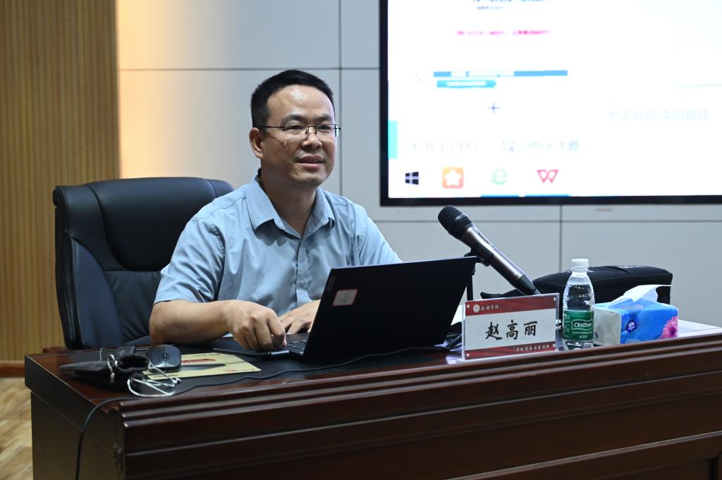 首先,赵高丽针对当前世界发展大局和新科技、产业变革,提出中国高等教育人才培养范式必须进行一次重大变革。他说,当前国外众多大学已开展混合式学习实践,将在线学习整合到各类面授教学中,并且越来越关注混合式学习质量的评价及提升。未来高等教育将融入在线学习体系,改革学习范式,转变高等教育机构运作模式。并分别以英国南安普顿大学、加拿大阿尔伯塔大学、宾夕法尼亚州立大学、哈佛大学为例介绍了国外信息化环境下的教育教学情况。随后,赵处长指出,大学是国之战略重器。他从“地位作用”、“发展阶段”、“类型结构”、“舞台坐标格局”四个方面分析了我国高等教育新阶段的新特征。针对目前大学教育管理存在的问题,指出了新时代大学发展的痛点,从而论证了为什么要对大学教育管理进行创新。最后,赵处长分享了自己对人工智能在教学中的应用的看法。他指出,凡是人工智能擅长的知识和能力,教师可以少教甚至不教,凡是人工智能不擅长或者无能为力的知识和能力,需要多教或重点教。要把宝贵的时间和精力,投向那些人工智能无法或不能替代的知识和能力。